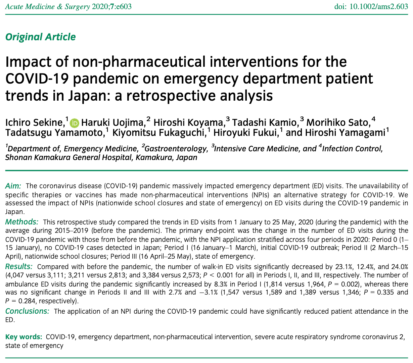 【学術活動】原著論文 Emergency department trends with COVID-19