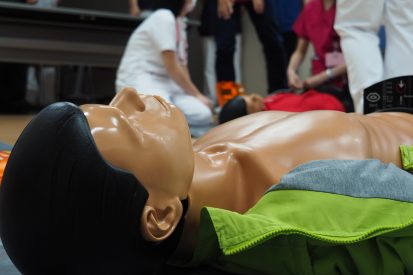 胸骨圧迫、AED、バイタル測定、聴診器、救急要請